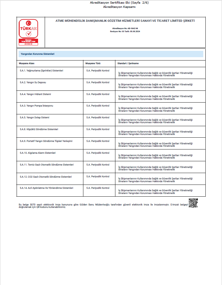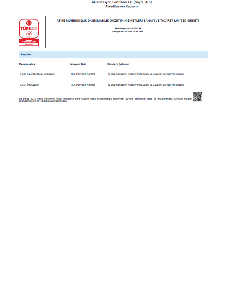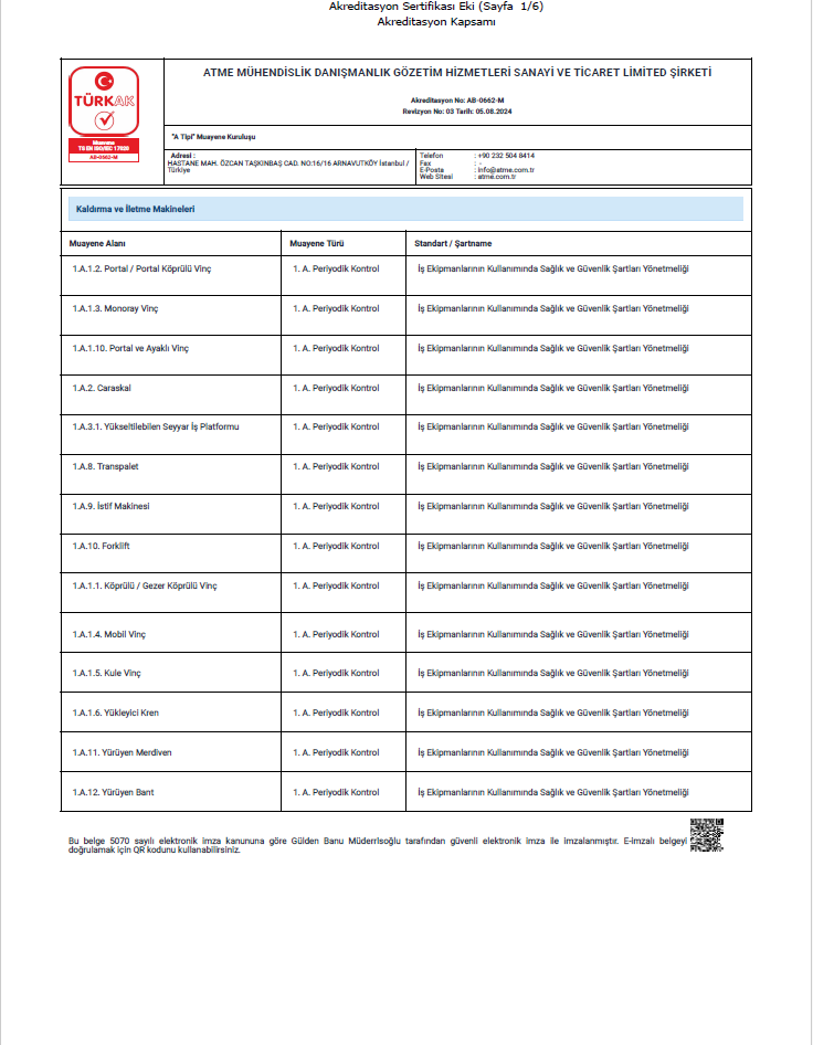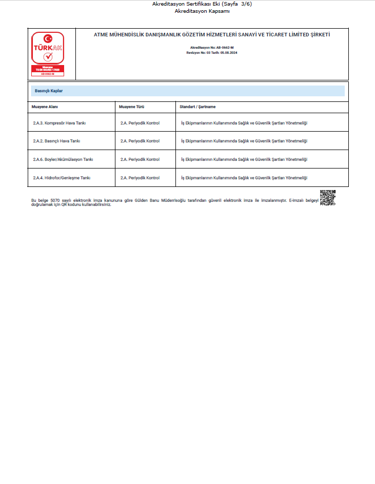 TS EN ISO/IEC 17020 standardında akreditasyon kapsamında bulunan firmamız tüm Türkiye de periyodik kontrol hizmeti vermektedir.